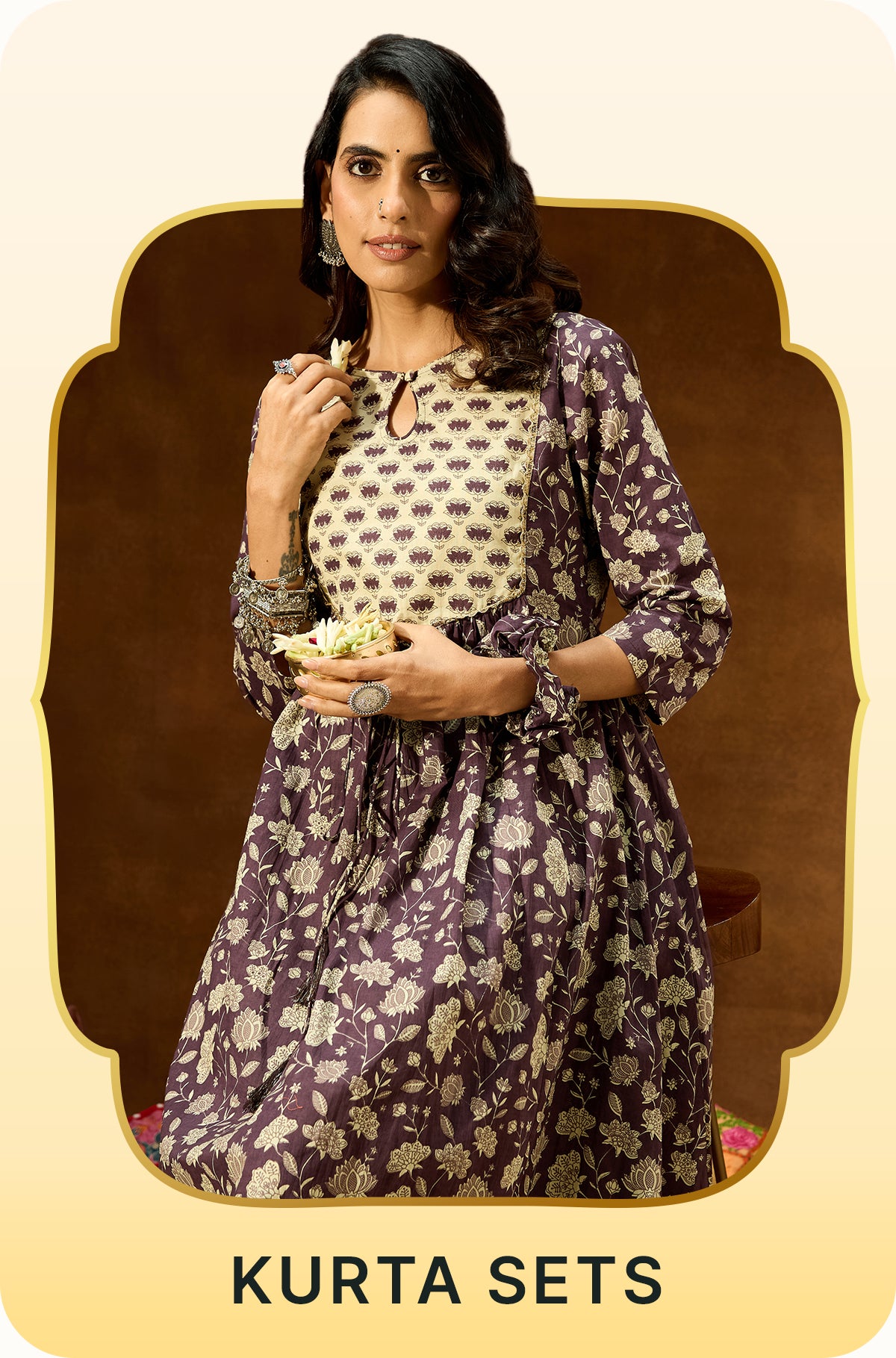 Indigo Pure Cotton Floral Printed Gathered Maternity Kurta Set