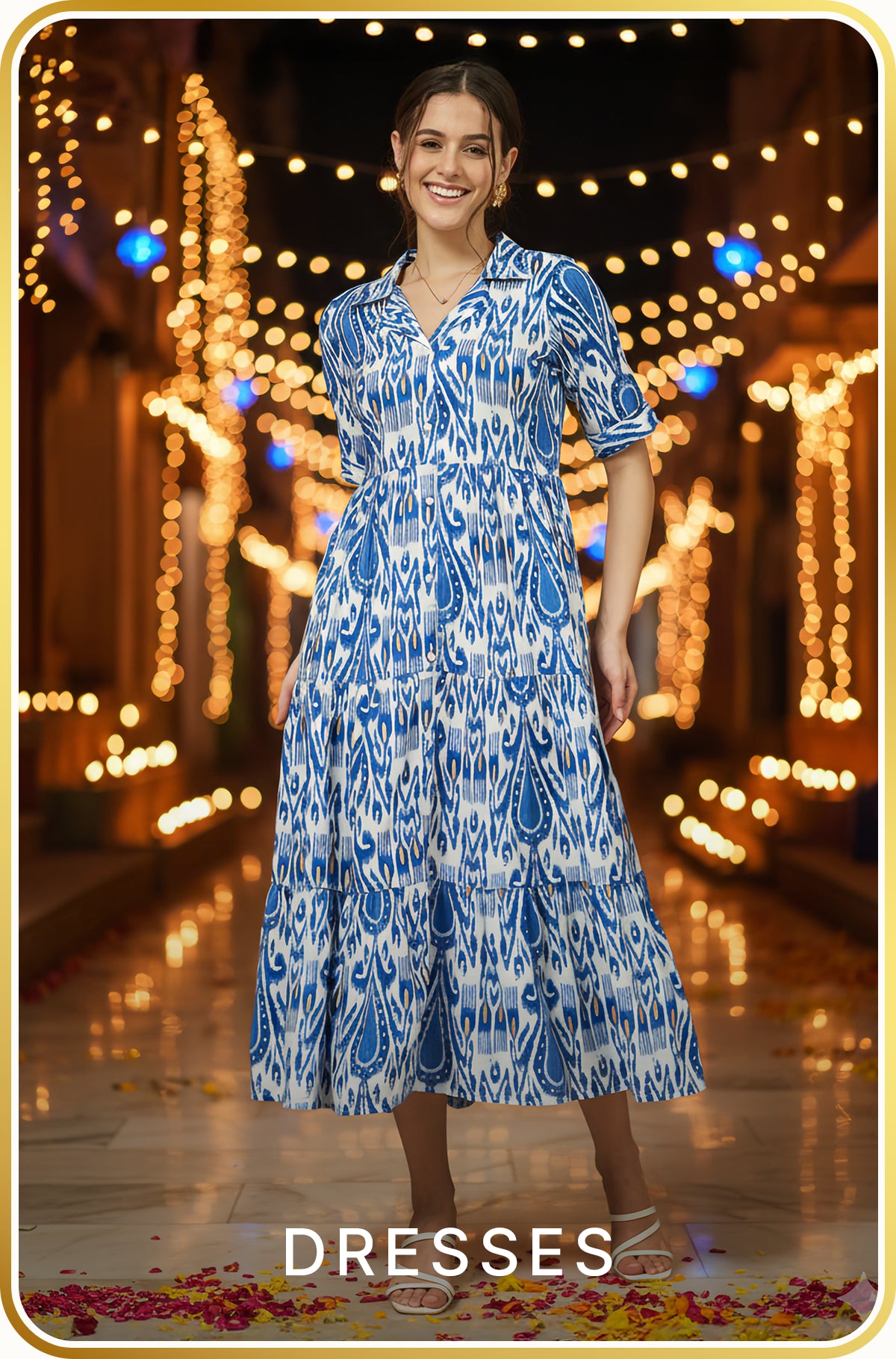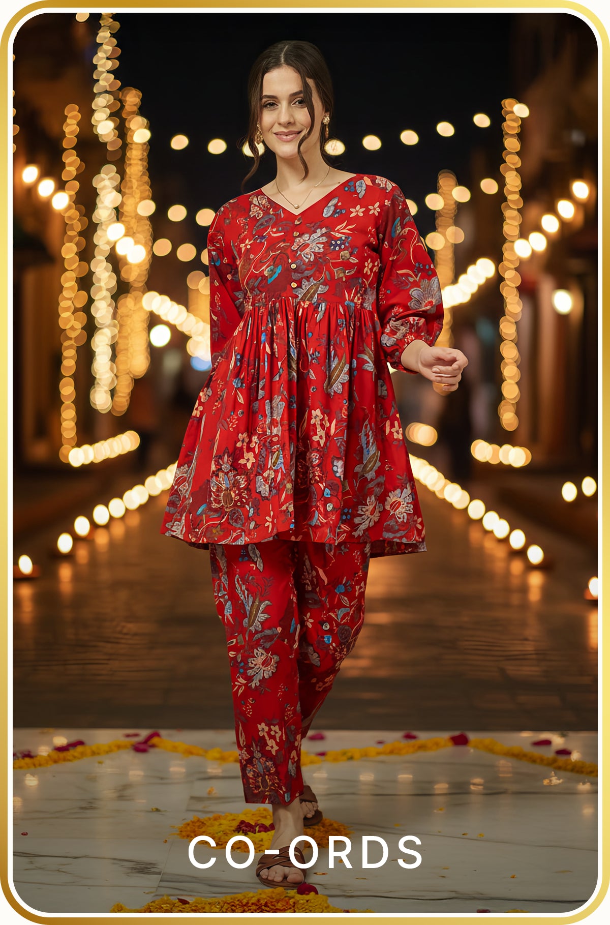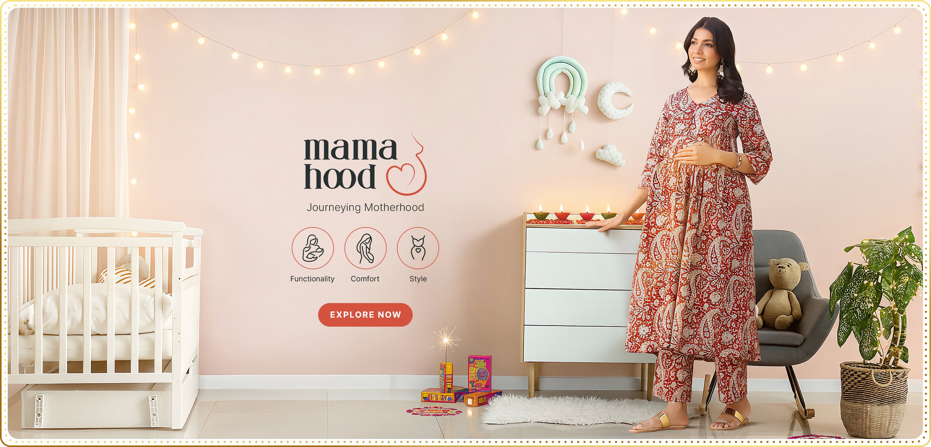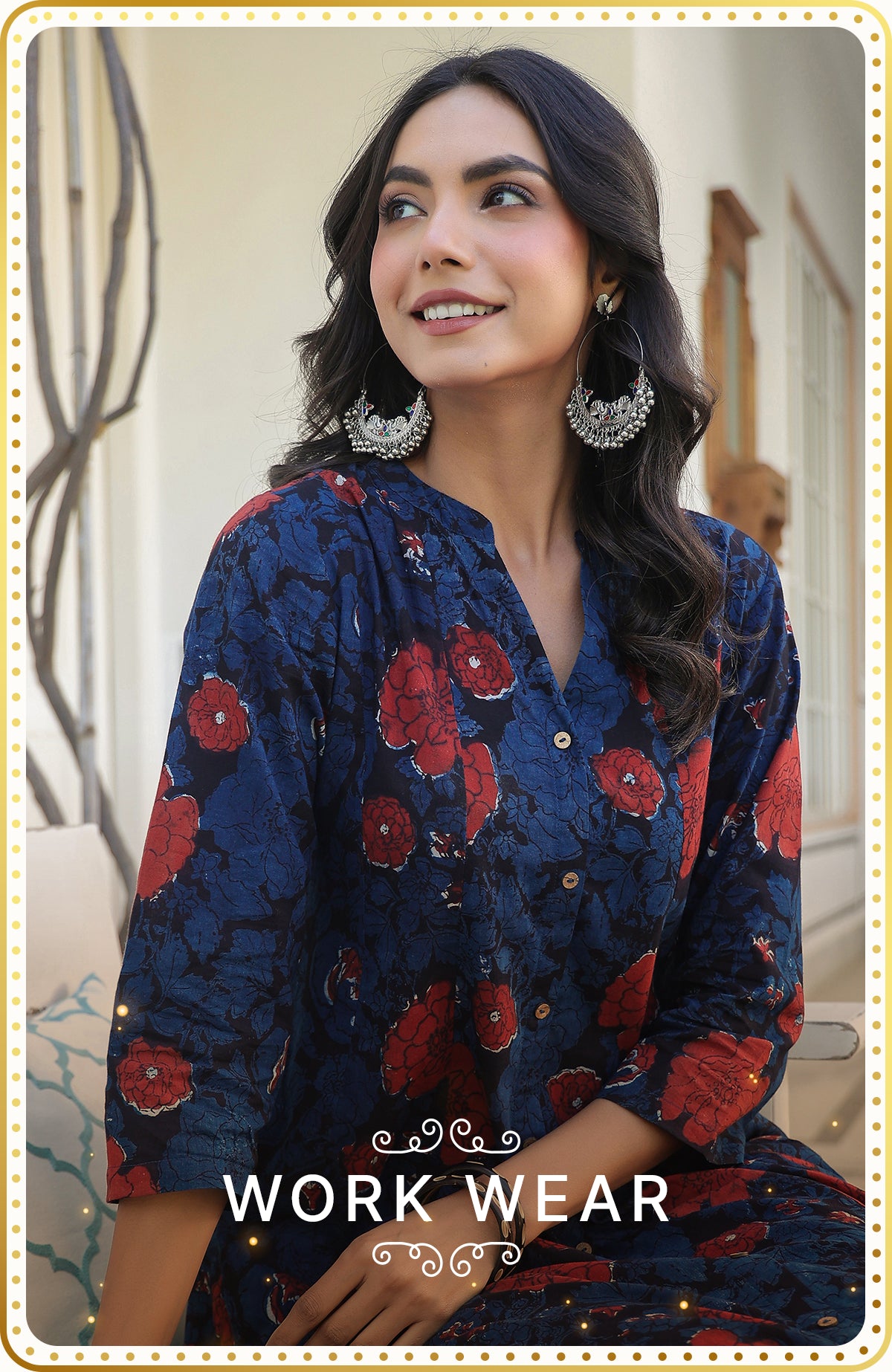 Indigo Pure Cotton Floral Printed Gathered Maternity Kurta Set