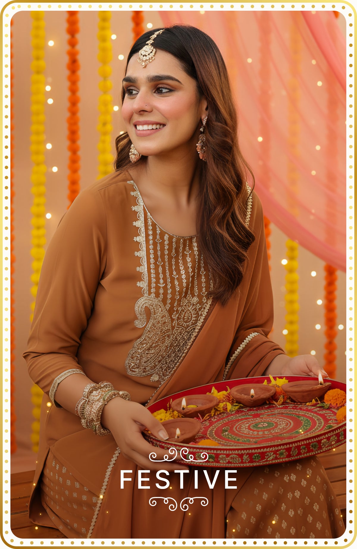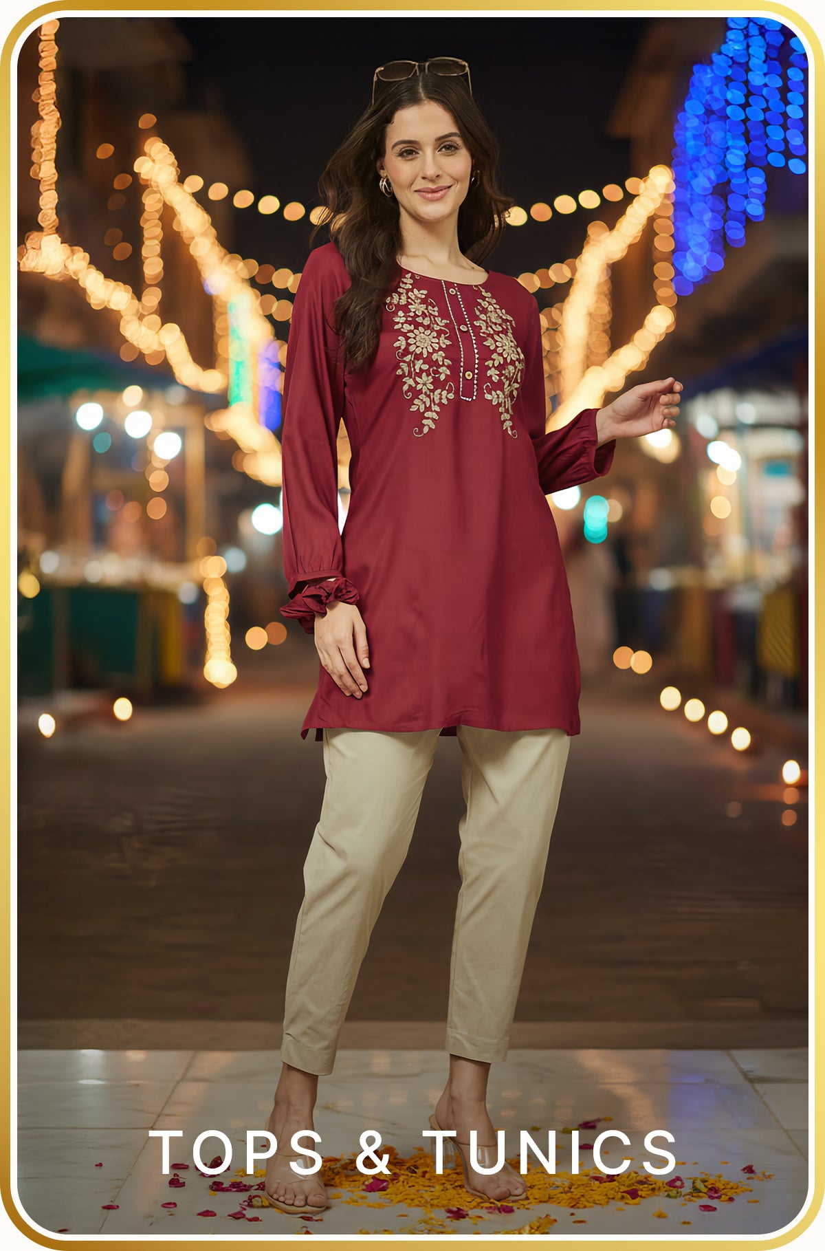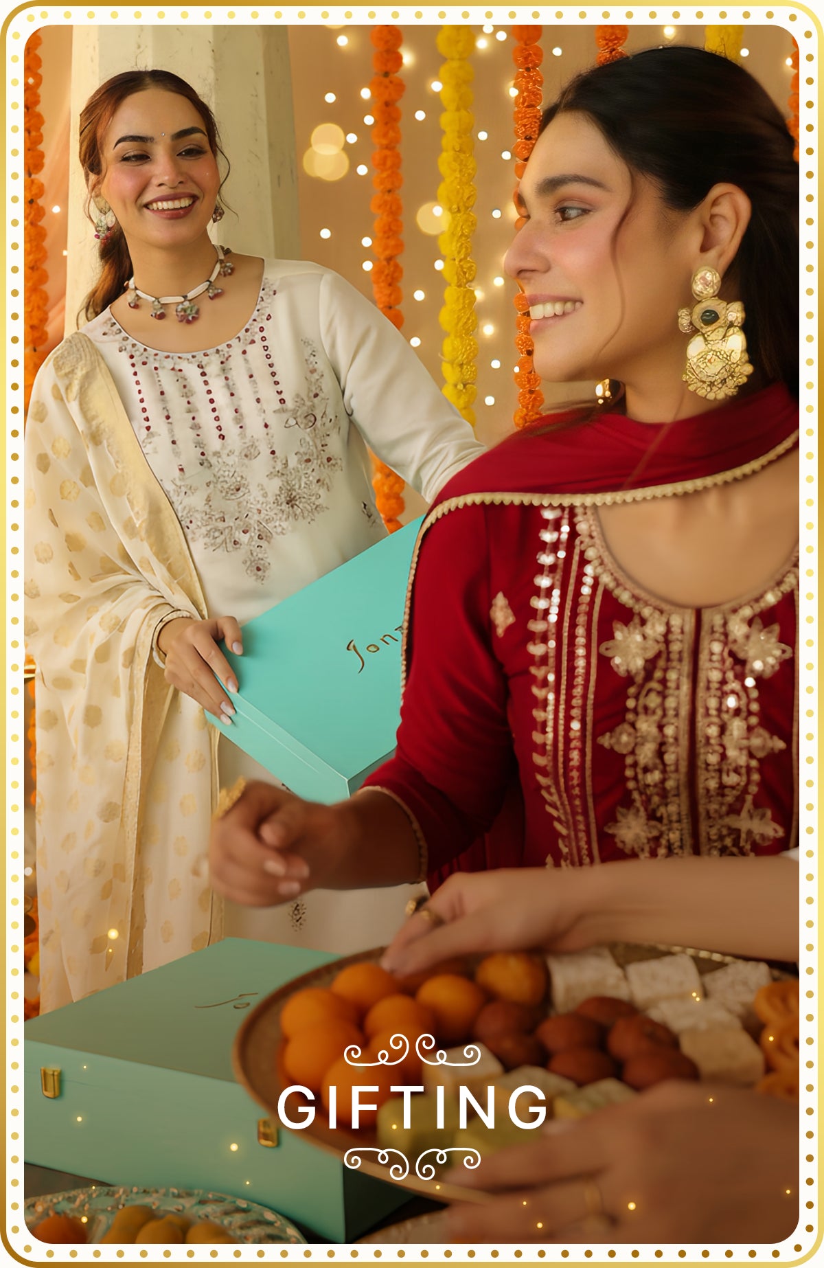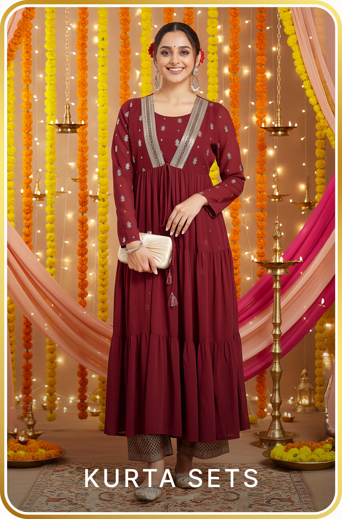 Janasya Women's Plus Size Cream & Maroon Georgette Embroidered Ajrakh Printed Straight Kurta Set