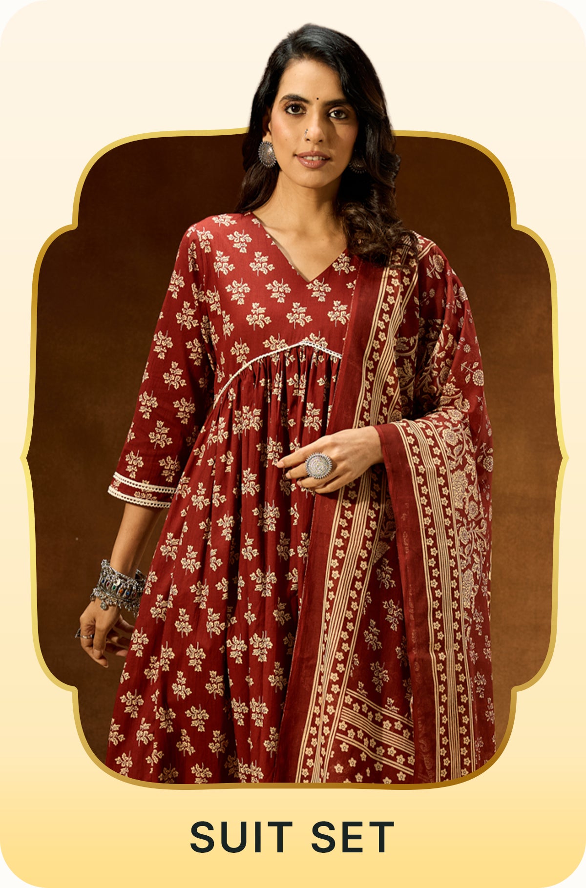 Indigo Pure Cotton Floral Printed Gathered Maternity Kurta Set