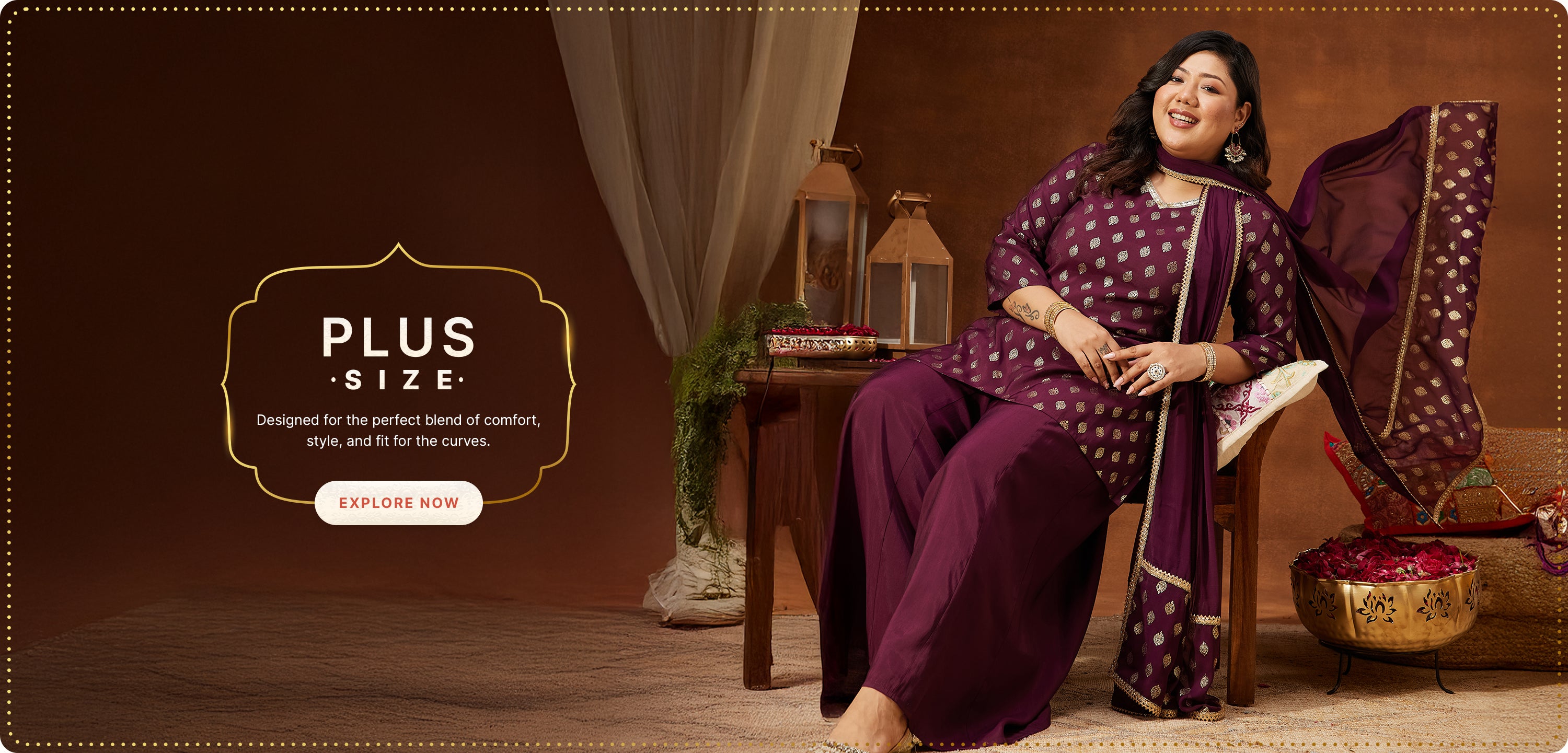 Janasya Women's Plus Size Cream & Maroon Georgette Embroidered Ajrakh Printed Straight Kurta Set