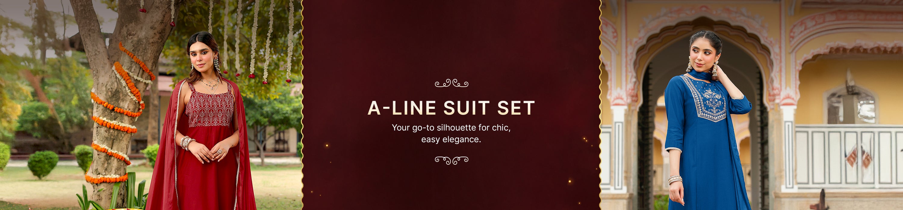 Janasya Women's Maroon Silk Blend Foil Printed Yoke Embroidered A-line Kurta Set