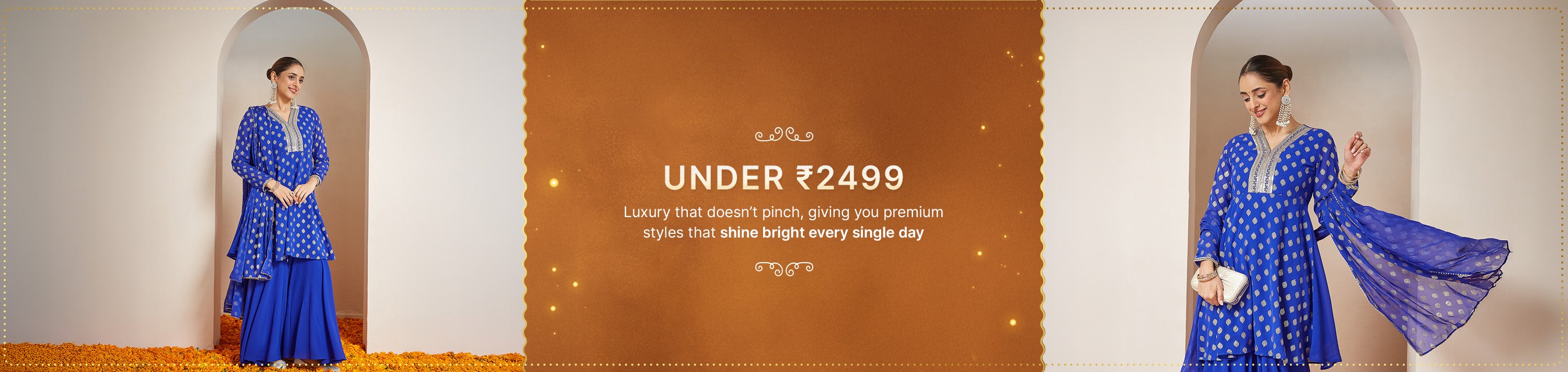 Janasya Women's Dark Blue Georgette Ajrakh Printed Embellished Anarkali Kurta Set
