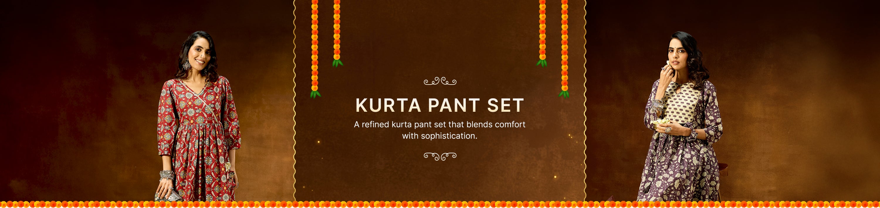 Indigo Pure Cotton Floral Printed Straight Kurta Pant Set