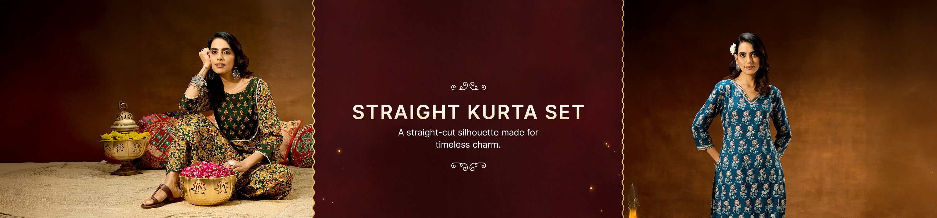 Janasya Women's Brown Silk Blend Zari Embroidered Straight Kurta Pant Set