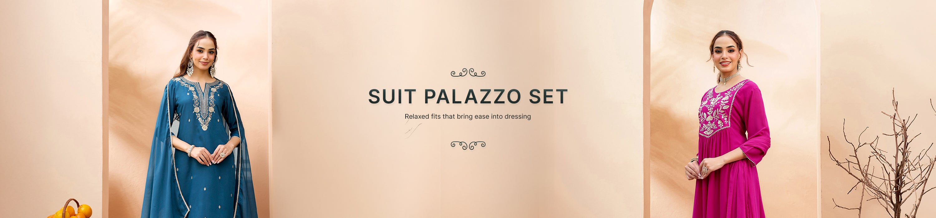 A1: Janasya offers a wide range of Palazzo Pant Kurta Set. You can find Anarkali Palazzo Kurta Set, Printed Kurta Palazzo Set, Angrakha Kurta Set with Dupatta and more. We offer a wide variety of different options for those who want to establish an individual style and stand out from the crowd.