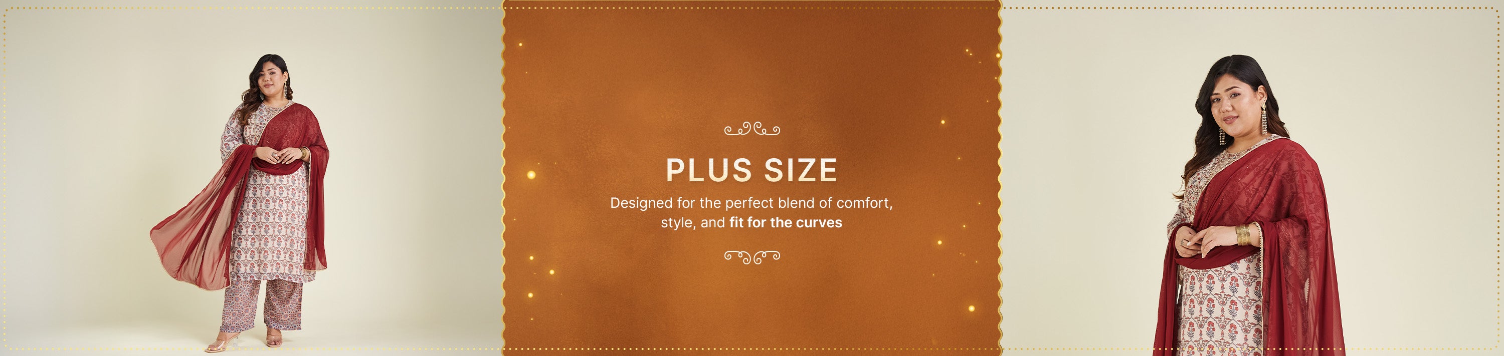 Love your curves, feel confident wearing what you love, whether getting ready for a formal occasion or a party, plus size Kurtis, chic plus size party wear, or plus size casual dresses, or plus-size office wear, you can find everything crafted and designed to flatter your curves and showcase your unique style.