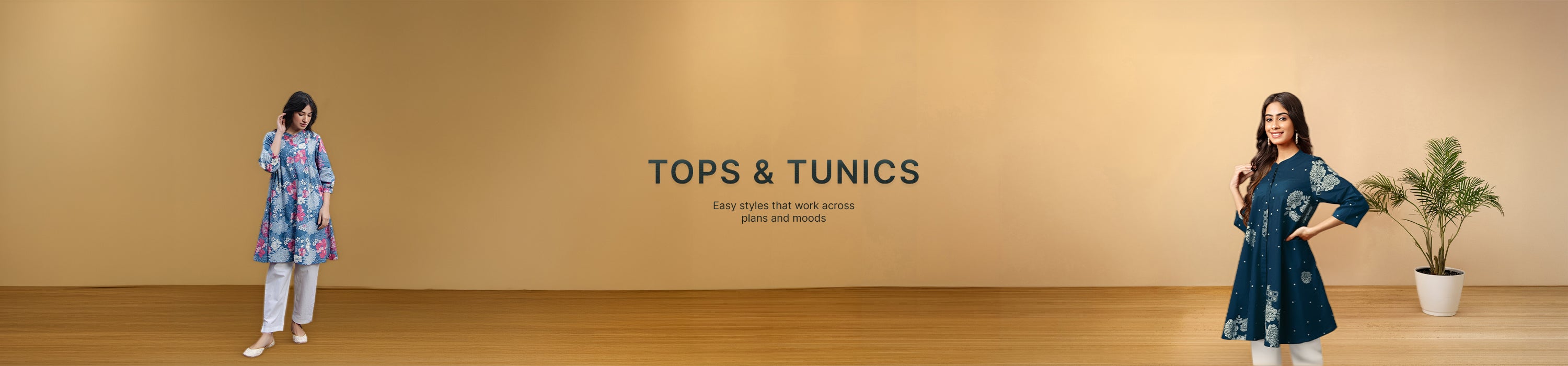 What are you looking for? Floral print tops for women or cotton tops for women in solid, you will find everything you desire, spin your magic wand and find the greatest styles for ethnic wear, office wear, and casual wear that can be styled in just a wink for any occasion. What’s the catch? The versatile piece of clothing can be paired with your favorite bottom like pants, palazzo, leggings, flared skirts, or denim wear for women’s skirts which can highlight the unique design and can be pumped up for any occasion, all you need is to know what to wear with a same tunic top when and how. A wristwatch with a tote bag and trousers on a stylish top for women or tunic can make it a workwear look, whereas pairing the same top or tunic with a Sharara or palazzo with silver jewelry and potli bag allow it to be a perfect ethnic wear look.