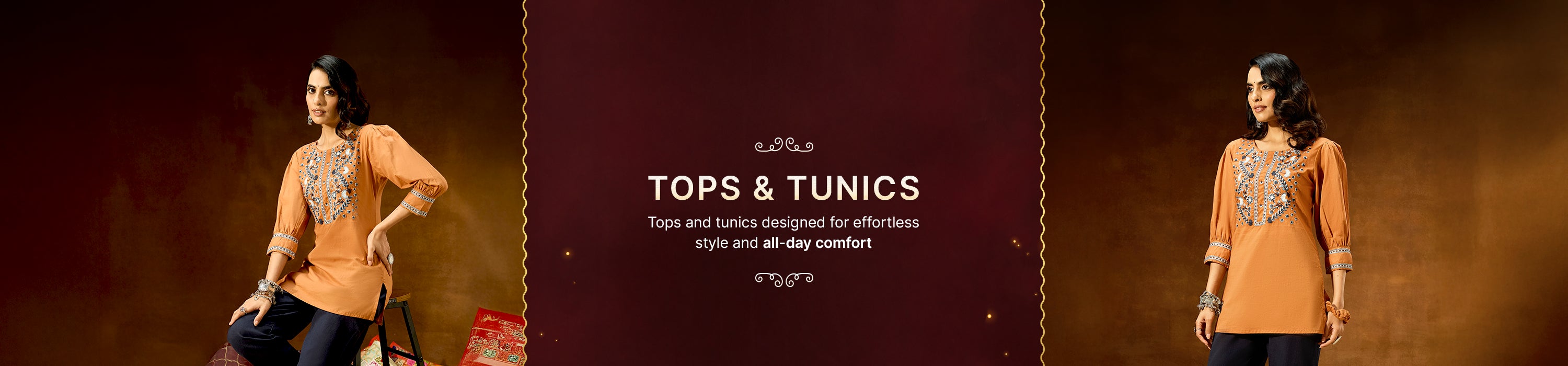 What are you looking for? Floral print tops for women or cotton tops for women in solid, you will find everything you desire, spin your magic wand and find the greatest styles for ethnic wear, office wear, and casual wear that can be styled in just a wink for any occasion. What’s the catch? The versatile piece of clothing can be paired with your favorite bottom like pants, palazzo, leggings, flared skirts, or denim wear for women’s skirts which can highlight the unique design and can be pumped up for any occasion, all you need is to know what to wear with a same tunic top when and how. A wristwatch with a tote bag and trousers on a stylish top for women or tunic can make it a workwear look, whereas pairing the same top or tunic with a Sharara or palazzo with silver jewelry and potli bag allow it to be a perfect ethnic wear look.