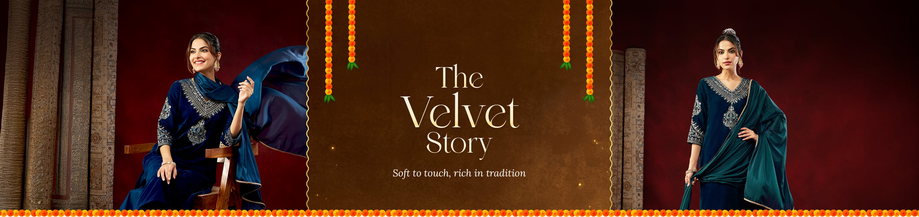 Janasya Women's Maroon Velvet Zari Yoke Embroidered Straight Co-ord Set