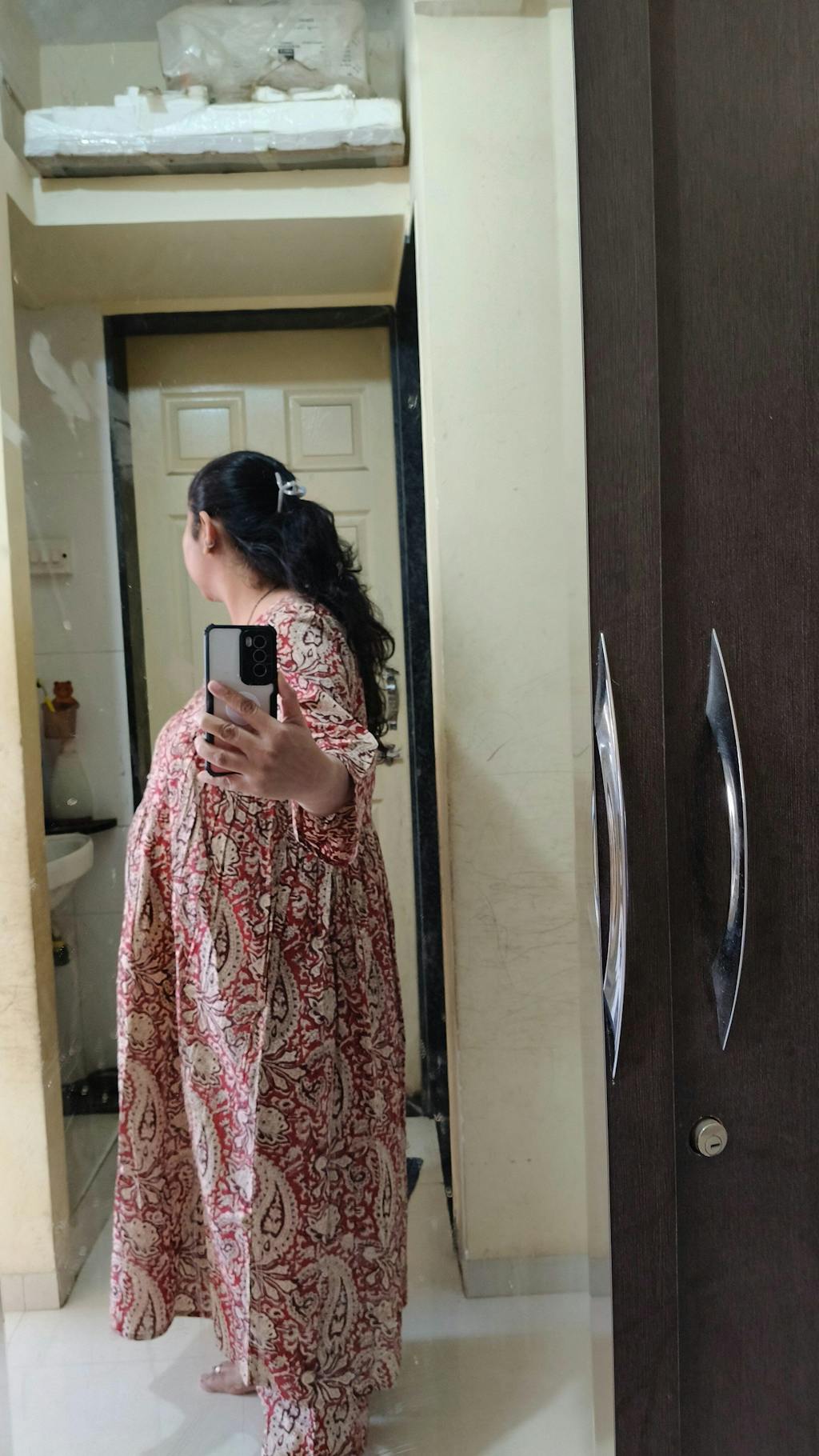 Magenta Pure Cotton Ethnic Motifs A-line Maternity Kurta Set