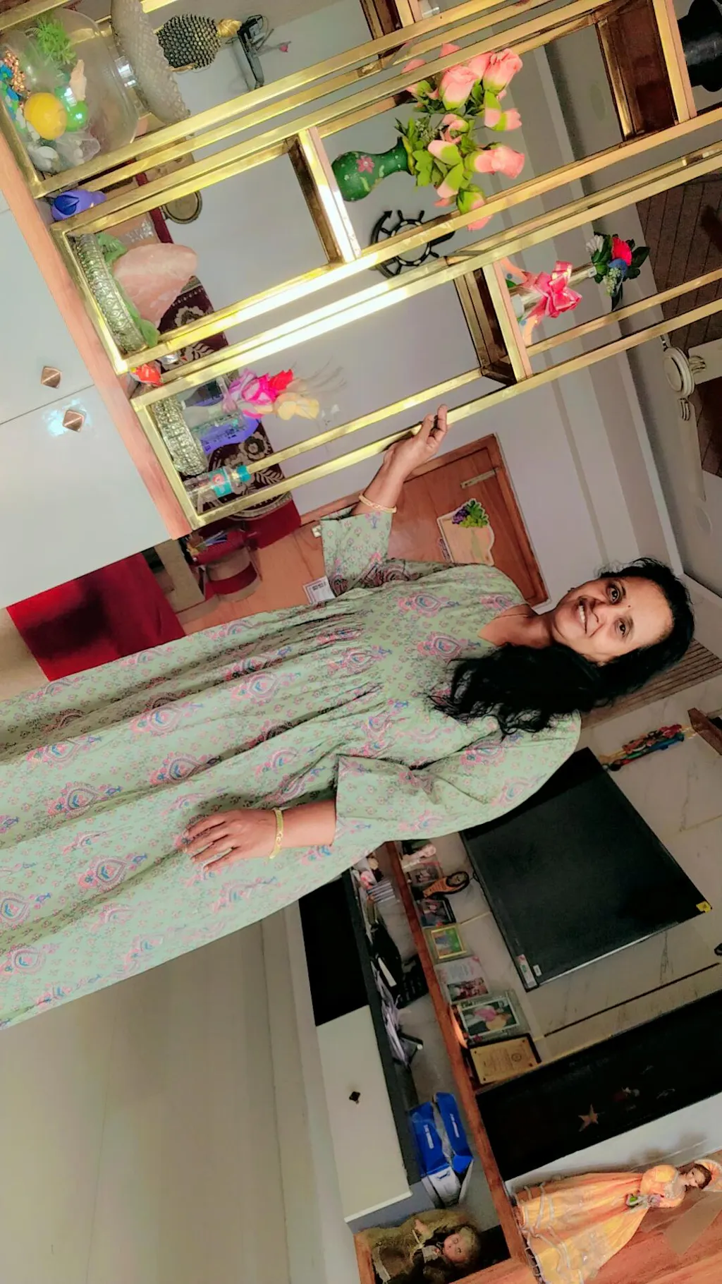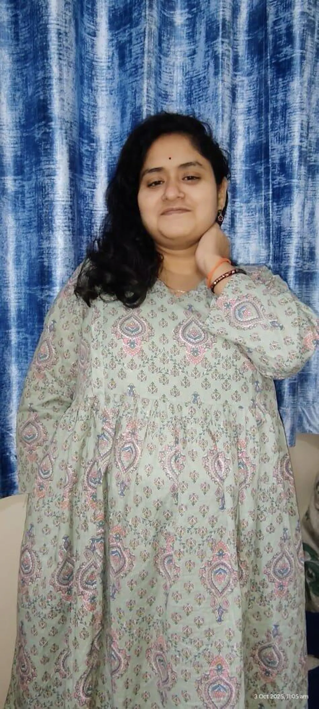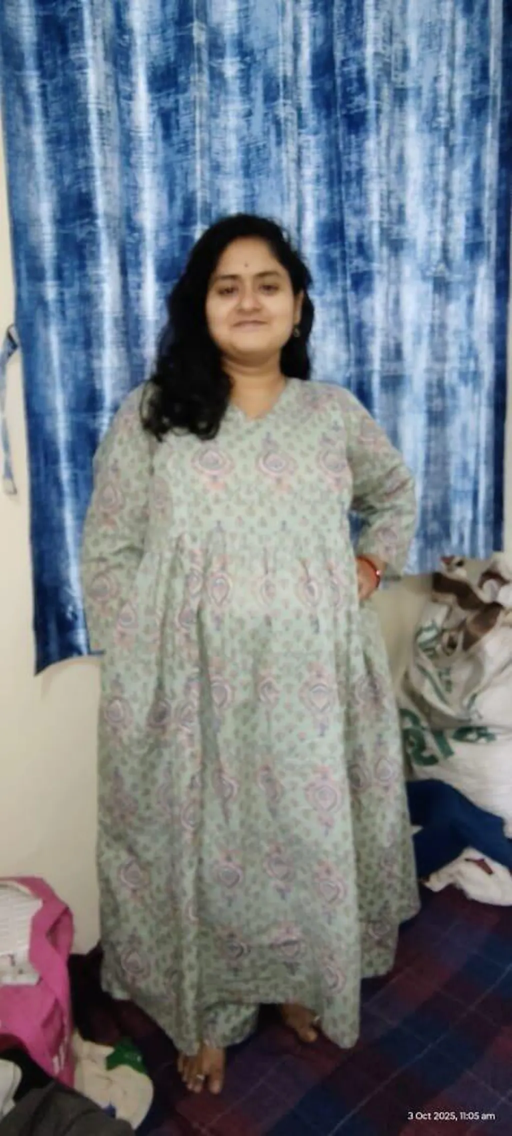 - This light green cotton floral-printed a-line maternity kurta set is a blend of elegance and practicality. Decorated with vibrant multicoloured floral prints, the top features a chic v-neck and side zip closures for a feeding-friendly design. Gathers under the bust ensure a belly-friendly fit that adapts to every stage of pregnancy, while the side pocket adds everyday convenience. Paired with matching straight palazzos, this set offers a complete and stylish look. Perfect for mums-to-be, both during and after pregnancy, it effortlessly combines comfort and charm.